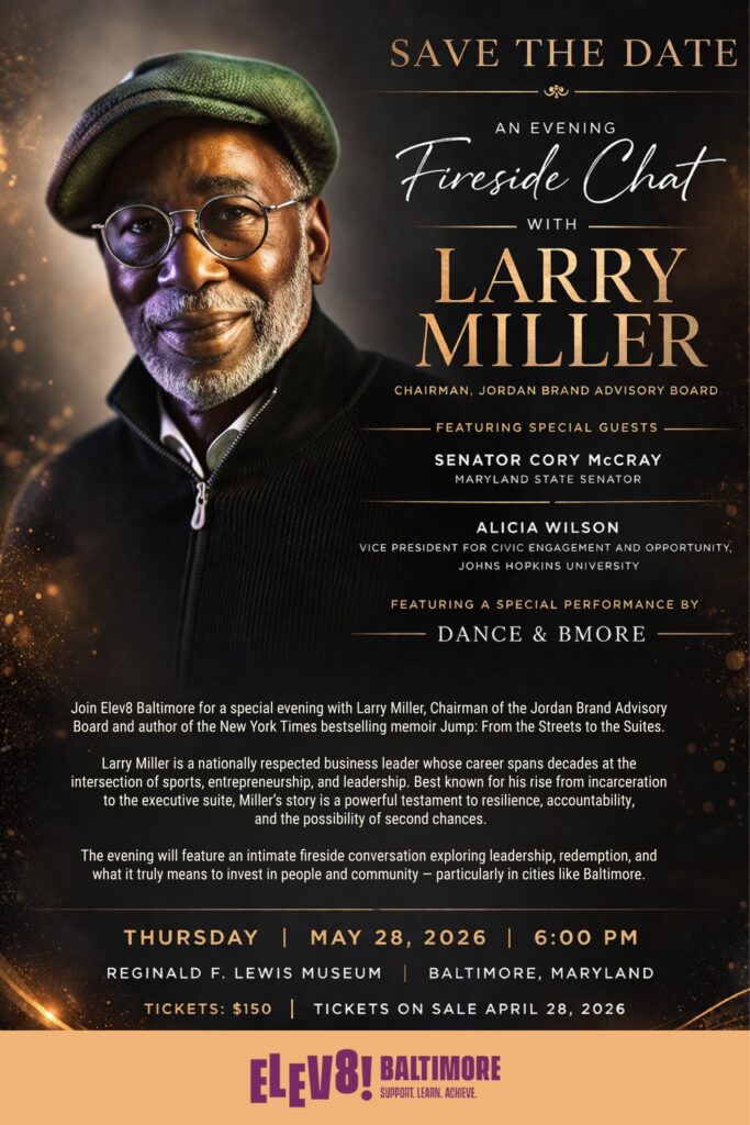 On an upcoming evening that promises both inspiration and impact, Elev8 Baltimore will host an intimate fireside chat featuring Larry Miller — former CEO of the Jordan Brand, current Chairman of its Advisory Board, founder of the Justice & Upward Mobility Project, and author of the New York Times bestselling memoir Jump: From the Streets to the Suites.