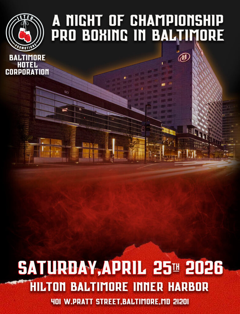 “Jeter Promotions is proud to produce quality, professional boxing events that showcase rising talent and celebrate the sport at its best,” Jeter said. “We are proud to work alongside the Baltimore Hotel Corporation, the City, and the State to help bring high-quality boxing back to Baltimore fight fans.”